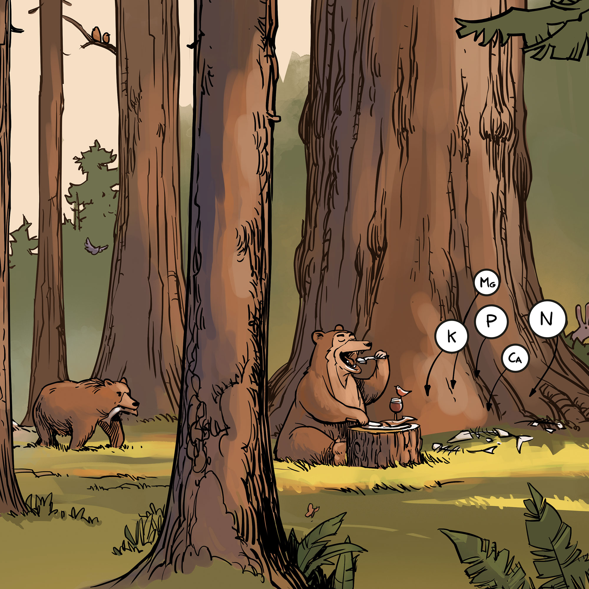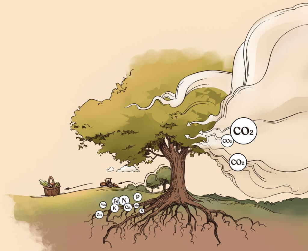 Au fil des siècles, l’accumulation de cet humus a permis à l’être humain de disposer de sols fertiles pour l’agriculture. On peut donc affirmer que c’est la capacité des arbres à se nourrir d’invisible qui permet aux humains d’obtenir leur nourriture qui, elle, est concrète. Les arbres sont ainsi les nourrisseurs de l’humanité.