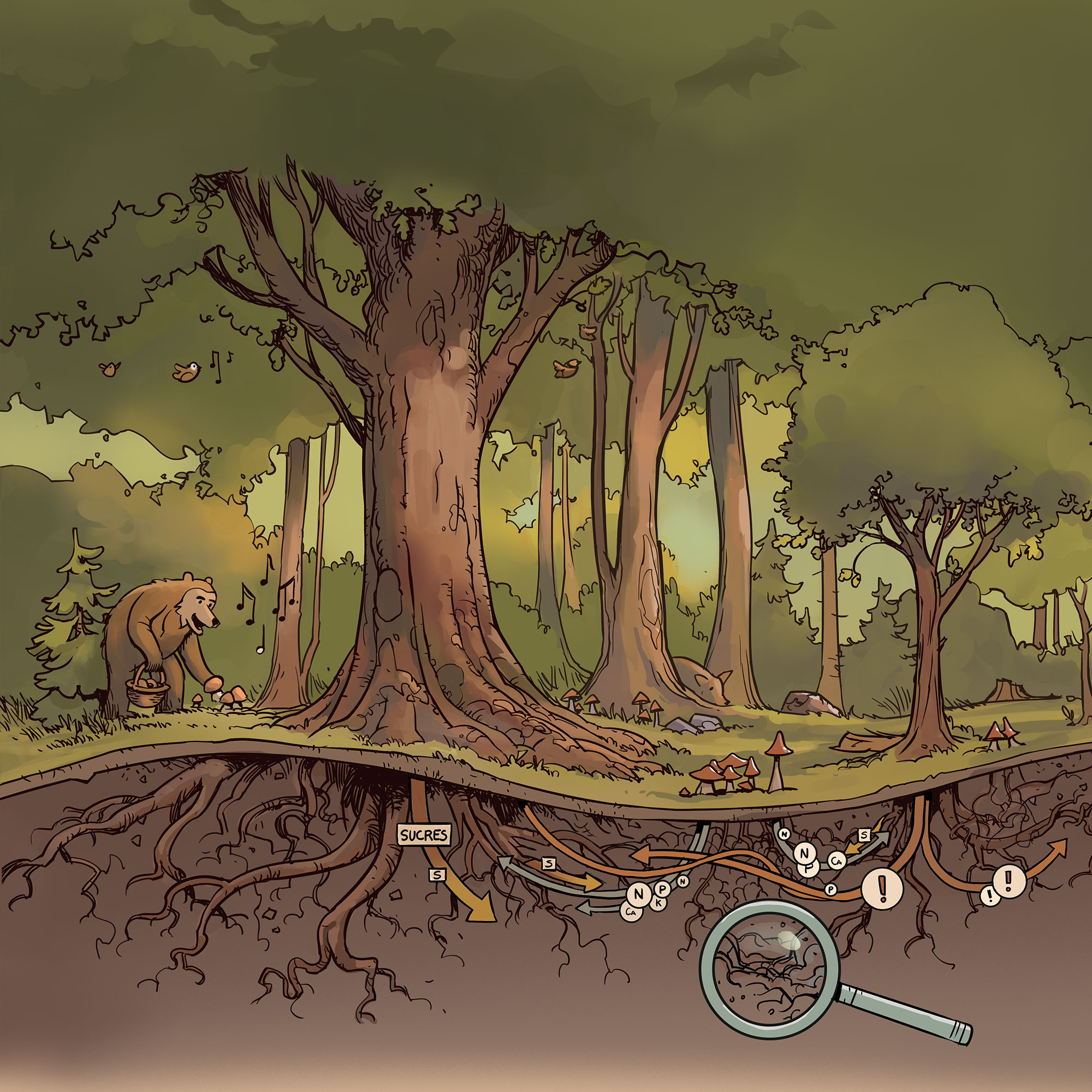 Les notions présentées sur les panneaux ne font pas toutes l’objet d’un consensus scientifique en 2025. Certaines, telles que l’arbre-mère, nécessitent des travaux de recherche complémentaires.